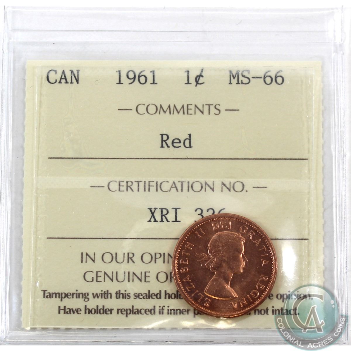 1-cent 1961 ICCS Certified MS-66 Red. Tied for the finest known by ICCS