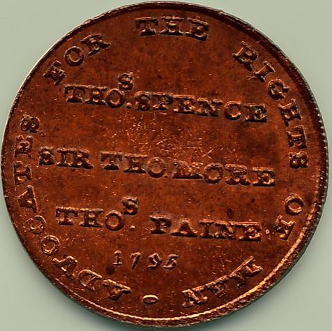 1795 GREAT BRITAIN PIGS MEAT THOMAS SPENCE CONDOR TOKEN-MS65