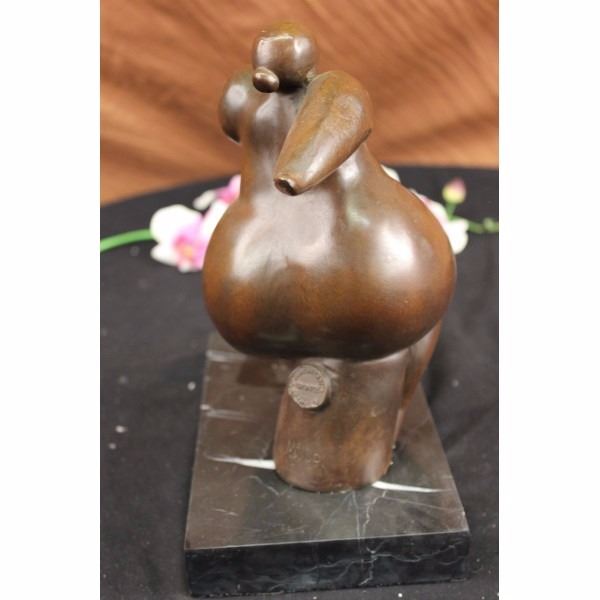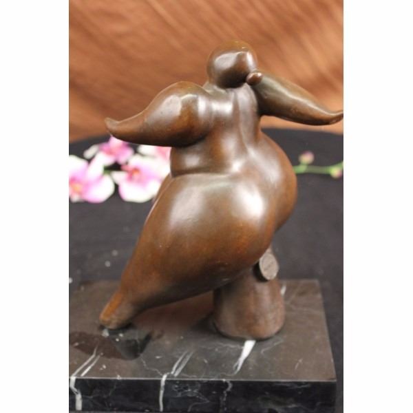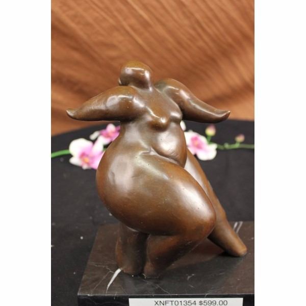The curvy nude woman bends her knee to make her next move in hercomplex dance. The composition recalls the Classical senseyet adopts a modern abstract flair that gives her body an addedemphasis on her curvaceousness. She seems to coyly look up as ifblushing due to the gushing admiration she gets from the beholderwitnessing her body. The bronze sculpture was captured using theancient method of lost-wax casting and finished with a brown patinastain for preservation. She is mounted upon a black marble base withthe artist Milo's signature.The artist Milo lived most of his childhood in Andalusia, Spain.Influenced by an artistic family background, he began sculpting at theage of seventeen. After apprenticing with several accomplishedsculptors both in America and Spain, he began his own work focusingequally on steel and bronze. Condition: This sculpture is in PERFECT condition. Bronze Dimensions with Marble Base:Height 10" x Width 8 1/2" Marble Dimensions: 8 1/2" X 5 1/2" . Height without base: 9" Weight : 11 LBS Inventory; 51XF0134515