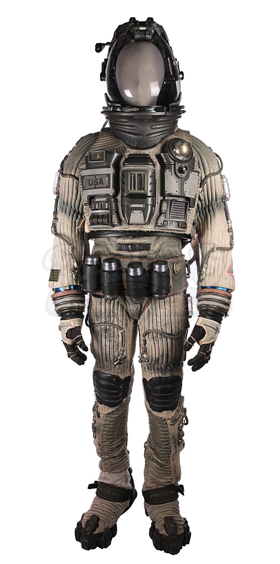 Distressed for use on the production, giving the appearance of heavy wear from navigating the unforgiving asteroid terrain, the suit shows signs of deterioration on the foam components, with some breaks, cracks and small missing parts throughout. Dimensions (displayed): 42 cm x 70 cm x 200 cm (16 ½” x 27 ½” x 79”)