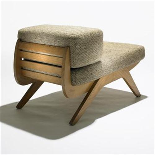 Charlotte Perriand<BR>Tokyo lounge chair<BR>Galerie Steph Simon<BR>France, 1954<BR>oak, upholstery<BR>18.75 w x 30.5 d x 20 h inches<BR>Jean Prouve's daughter, Simone, designed the upholstery for this chair. Sold with cushions (not shown).<BR>Literature: <BR><i>Charlotte Perriand: Un Art dHabiter</i>, Barsac, pg. 398 <i>Les Decorateurs des Annees 50</i>, Favardin, pg. 136<BR><BR>Condition of the item is not included in this description. Condition reports are available from Wright upon request. Wright strongly recommends that you review a condition report for each item on which you plan to bid.