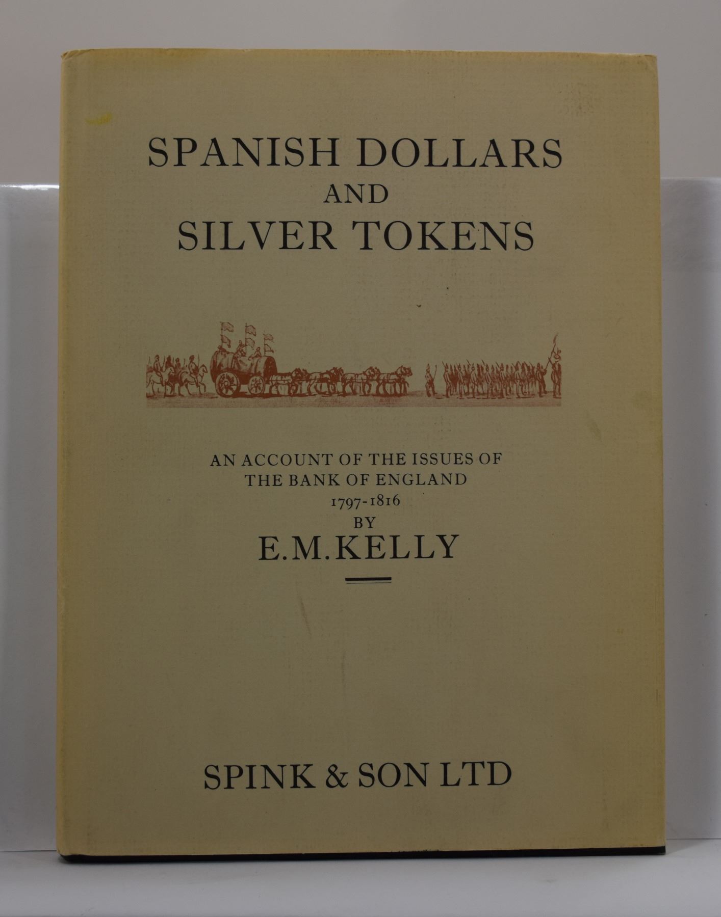 Kelly, E. M. SPANISH DOLLARS AND SILVER TOKENS: AN ACCOUNT OF THE ISSUES OF THE BANK OF ENGLAND 1797-1816. Spink & Son Ltd. 1976. 4to, 145 pages; Hardcover w/ DJ; 8 plates. Subject: Coinage - Great Britain