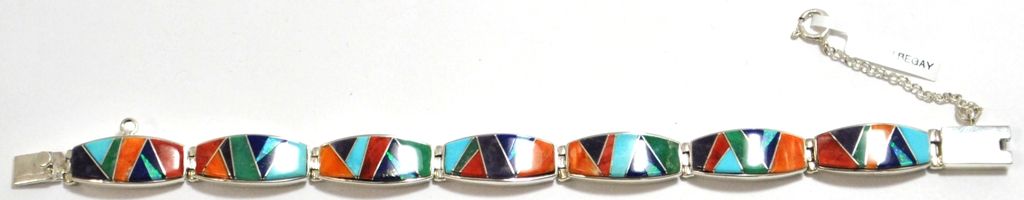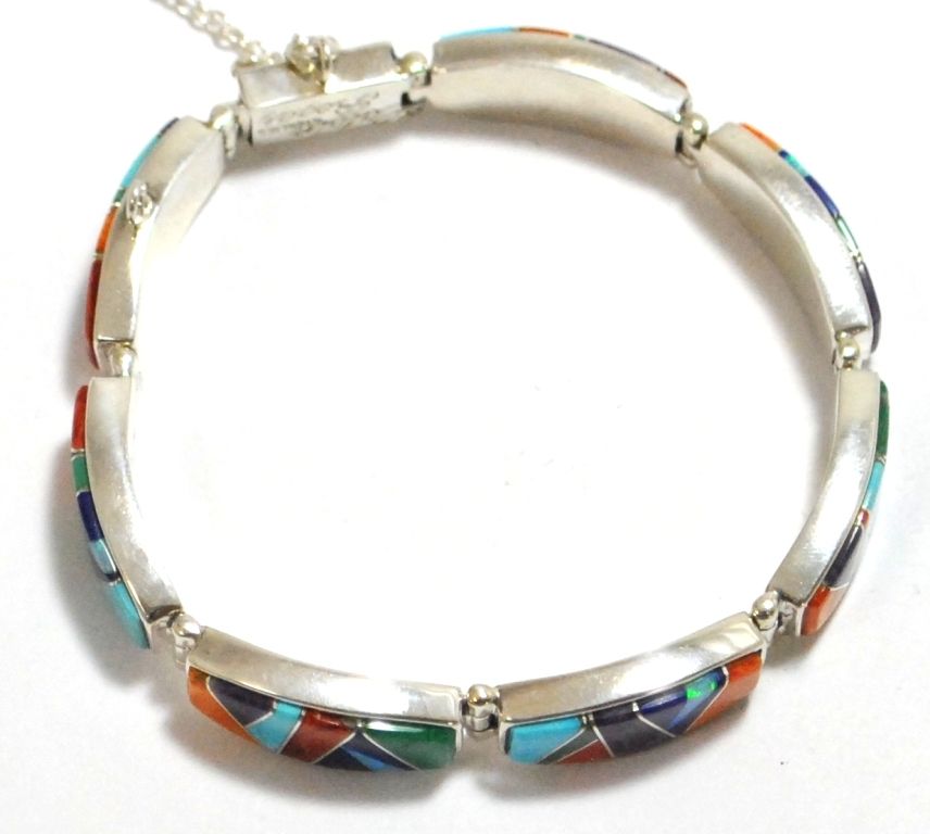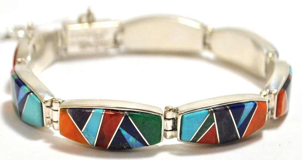 Navajo Multi-Stone Inlay Sterling Silver Link Bracelet - Calvin Begay