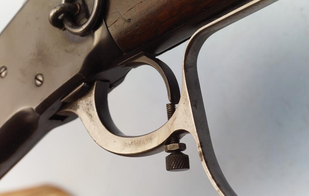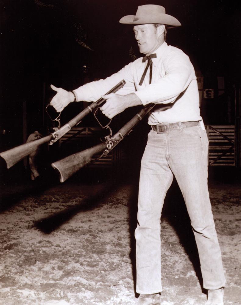 Winchester 1892, 44-40 Carbine, Ser #497689The rifle was made to be used in the 6th season of The Rifleman. As the producers contemplated expanding to one hour and upgrading to color due to tough competition from other Westerns, Connors chose to leave and pursue other acting opportunities. The 6th season was never produced.Chuck Connors (1921-1992)The Rifleman was a classic of TV Westerns, the saga of rancher Lucas McCain, a homesteader in 1880s New Mexico Territory, struggling to make ends meet while raising his young son, Mark. Lucas was never without his trick rifle, and his expertise with it had earned the reputation as The Rifleman. Chuck Connors was Lucas and Johnny Crawford played Mark. The two actors worked perfectly together and brought a lot of humanity to their scenes. The Rifleman was shot in black and white at half-hour in length. It debuted on ABC in 1958 and ran until 1963, often in the top 10 of the week’s ratings.Westerns were popular when The Rifleman premiered, and producers aimed to find ways to distinguish one show from another. The Rifleman’s hook was a modified Winchester Model 1892 rifle with a trigger mechanism allowing for rapid-fire shots. The episodes of The Rifleman promoted fair play, neighborliness, equal rights, and the need to use violence in a highly controlled manner (“A man doesn't run from a fight,” Mark, McCain tells his son, “But that doesn't mean you go looking to run TO one!”)The show was created and initially developed by a young Sam Peckinpah, who would go on to become the director of classic Westerns. Peckinpah, who wrote and directed many of the best episodes from the first season, based many of the characters and situations on real-life scenarios from his childhood growing up on a ranch.After four decades of roles in television and film, Chuck Connors died from lung cancer in 1992 at the age of 71.Jeff Connors is one of four sons born to actor Chuck Connors, and at 6’ 2” is the smallest of the lot! An accomplished singer/songwriter, Jeff is a self-taught musician, and began playing music when he was 22 years old. He has very fond personal memories of his famous father, and enjoyed working with him professionally, as well. He guest starred in The Rifleman as a child and says that growing up with the name Connors has always been a positive part of his life and he is proud of his father’s legacy.An additional bit of history from son Jeff Connors: Chuck took this rifle out on a Sunday morning and decided to shoot it to see how much it would smoke. On stage he used quarter load blanks and for outside filming he used half loads. But he mistakenly used full load bullets that morning and shot off 11 rounds. The deafening noise startled and woke up his children and his wife, Betty. When a dozen police officers showed up at the door, all they could say when he answered was, “It’s him!”, and promptly requested and received autographs. And all he got was a warning. Good thing that most of the neighbors were away at church.