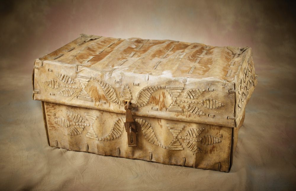 THE SADDLE: This remarkable silver-mounted, black leather saddle and bridle were presented in 1825 to the world-renowned Liberator of South America, Simón Bolívar. Nearly 200 years old, they are nearly complete (the stirrup leathers and portions of the saddle pad have been restored and reinforced over the years) and in remarkable condition for their age. In addition to a period letter documenting the ownership, the saddle bears not only Bolívar’s name in silver, but also the date and town in which it was presented to him.The saddle resembles the old Spanish jineta style. The sides are bordered in a double buck-stitch pattern. The bowed front and matching cantle are each mounted in heavy silver, and engraved in a floral motif. The front plate reads, AL LIBERTADOR SIMÓN BOLÍVAR in applied letters, and features two applied silver horsemen and an eagle, with an articulated and engraved silver hook. The cantle plate reads, POTOSI 1825, and features an applied coat of arms. The stirrups are of wood, completely covered with heavy silver, with the applied initials SB and lion’s-head disk, and bordered in an engraved floral motif. Around each stirrup leather is a heavy 5” ferrule of applied and engraved silver. The underskirt is also of black leather, with dramatic forward and backward sweeping corners. In each is a triangular patch of spotted animal fur, and a tip of engraved silver. Includes custom made saddle stand; THE BRIDLE: The highly decorative bridle features two brow bands and a nose band. The top band is joined in the center by a large, hand-worked and engraved five-point silver star, suspended from which are two silver ferrules and 6” leather fringes. The lower brow band is joined in the center by a large silver disk with the applied initials SB and a single 7” cluster of fringe. Two of the bands, as well as the cheek pieces, are decorated along their entire lengths with rows of worked and engraved silver flowers, and all buckles are silver. The age-appropriate bit, mouthpiece, rings and chain are constructed of hand-forged iron. The reins are of the period are braided and knotted rawhide. Condition of silver is very good. Bridle leather has undergone repairs and restoration over the past 190 years and is in fair condition;THE TRUNK: The trunk that accompanies the saddle and bridle measures 13” x 14” x 24” and is constructed entirely of cowhide, bound and extensively decorated with rawhide lacing. Side handles are also of rawhide and the trunk is secured by original hand-forged iron hasp and ring. Remants of animal hair are evident throughout. On underside of lid is 4” x 8” paper label, reading: Republica de Columia - Simón Bolívar - Liberator Presidente de la Republica etc. etc. etc. Trunk is complete and in excellent condition, given its age.A portion of the proceeds from this lot will be donated by the consignor directly to Triple R Horse Rescue of Arizona in Cave Creek, Arizona!Includes photocopy of original letter and translation