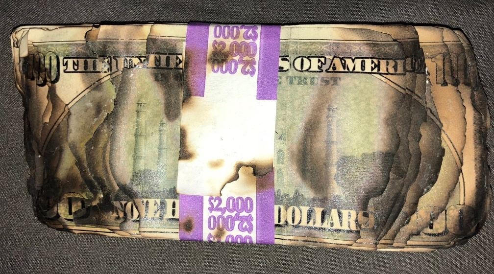 The Dark Knight (2008) - Burnt Money Stack.