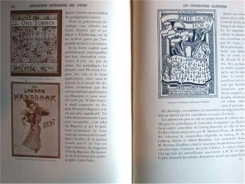 Très belle et fort intéressante publication illustrée d'une couverture en couleurs par Louis Rhead, d'un frontispice en 2 tons par Richard Wallace, d'un faux titre et de nombreux ornements par Léon Rudnicki ainsi que de nombreuses reproductions in et hors texte de couvertures illustrées, cartonnages, reliures industrielles et reliures mosaïquées illustrant les diverses tendances de la reliure anglaise et française, mais également danoise, hollandaise ou belge (reliures de van de Velde et Claessens entre autres). L'attention est aussi portée aux techniques et matériaux neufs (par ex. le cuir intaillé). 300 Euros