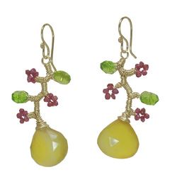 Metal: Gold Branches of pink tourmaline, peridot, and lemon chalcedony, about 1-1/2" long. Available in either 14K gold-filled, rose gold-filled, or sterling silver. All jewelry is entirely handmade in our studio in New York.
