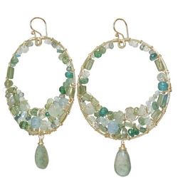 Metal: Gold Hammered circles with aquamarine, blue apatite, green apatite, and moss aquamarine, about 2" long. Available in either 14K gold-filled, rose gold-filled, or sterling silver. All jewelry is entirely handmade in our studio in New York.