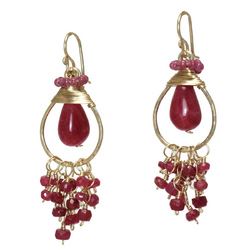 Metal: GoldHammered drops with rubies, about 2" long.Available in either 14K gold-filled, rose gold-filled, or sterling silver. All jewelry is entirely handmade in our studio in New York.