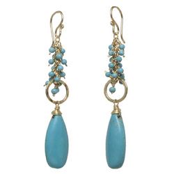 Metal: Gold Turquoise on hammered rings, about 2-3/4" long. Available in either 14K gold-filled, rose gold-filled, or sterling silver. All jewelry is entirely handmade in our studio in New York.