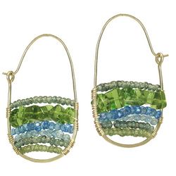 Metal: GoldDrop hoops wrapped with blue and green apatite, peridot, and green garent, about 1-3/4" long. Available in either 14K gold-filled, rose gold-filled, or sterling silver. All jewelry is entirely handmade in our studio in New York.