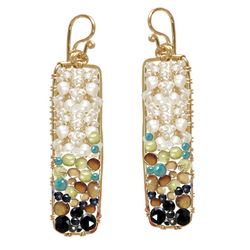 Metal: Gold Hammered rectangles with aquamarine and white branch coral wrapped around inside, about 2-1/4" long. Available in either 14K gold-filled, rose gold-filled, or sterling silver. All jewelry is entirely handmade in our studio in New York.