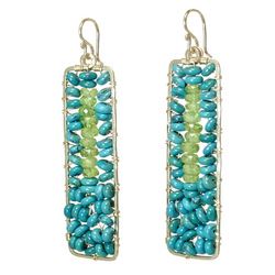 Metal: Gold Hammered rectangles with turquoise and peridot, about 2-1/4" long. Available in either 14K gold-filled, rose gold-filled, or sterling silver. All jewelry is entirely handmade in our studio in New York.
