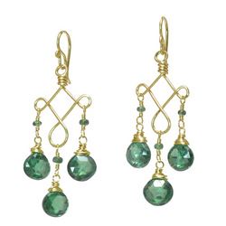 Metal: Gold Hammered filigree shapes with emerald green cz, about 2" long. Available in either 14K gold-filled, rose gold-filled, or sterling silver. All jewelry is entirely handmade in our studio in New York.