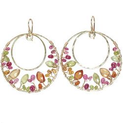 Metal: Gold Hammered circles with peridot, ruby, and mandarin garnet wrapped around inside, about 2" long. Available in either 14K gold-filled, rose gold-filled, or sterling silver. All jewelry is entirely handmade in our studio in New York.