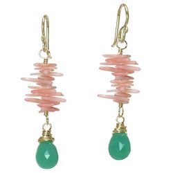 Metal: GoldClusters of pink coral and chrysoprase, about 2" long.Available in either 14K gold-filled, rose gold-filled, or sterling silver. All jewelry is entirely handmade in our studio in New York.
