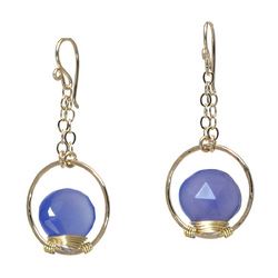 Metal: RoseGold Hammered circles on chain wrapped with your choice of stone (pale amethyst, royal blue chalcedony, and gold pearl shown), about 1-1/2" long. Available in either 14K gold-filled, rose gold-filled, or sterling silver. All jewelry is entirely handmade in our studio in New York.