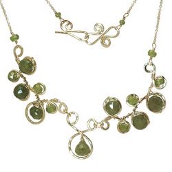 Metal: RoseGold Hammered squiggles with green garnet inside (contact us for different colors), about 18" long. Custom lengths available, contact us for price. Available in either 14K gold-filled, rose gold-filled, or sterling silver. All jewelry is entirely handmade in our studio in New York.