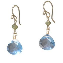 Metal: RoseGold Peridot with london blue quartz, about 1-1/2" long. Available in either 14K gold-filled, rose gold-filled, or sterling silver. All jewelry is entirely handmade in our studio in New York.