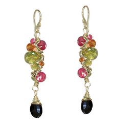 Metal: RoseGold Branches of ruby, mandarin garnet, peridot, and black spinel, about 1-3/4" long. Available in either 14K gold-filled, rose gold-filled, or sterling silver. All jewelry is entirely handmade in our studio in New York.