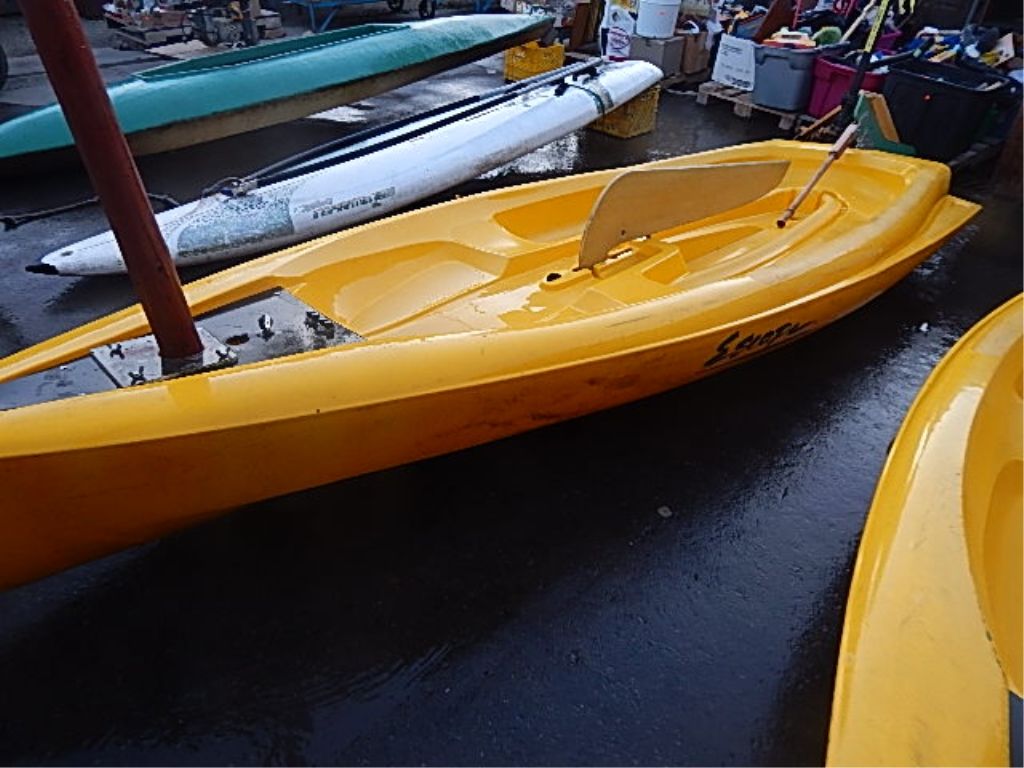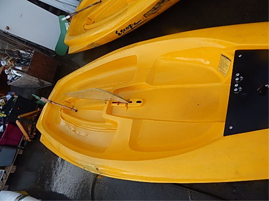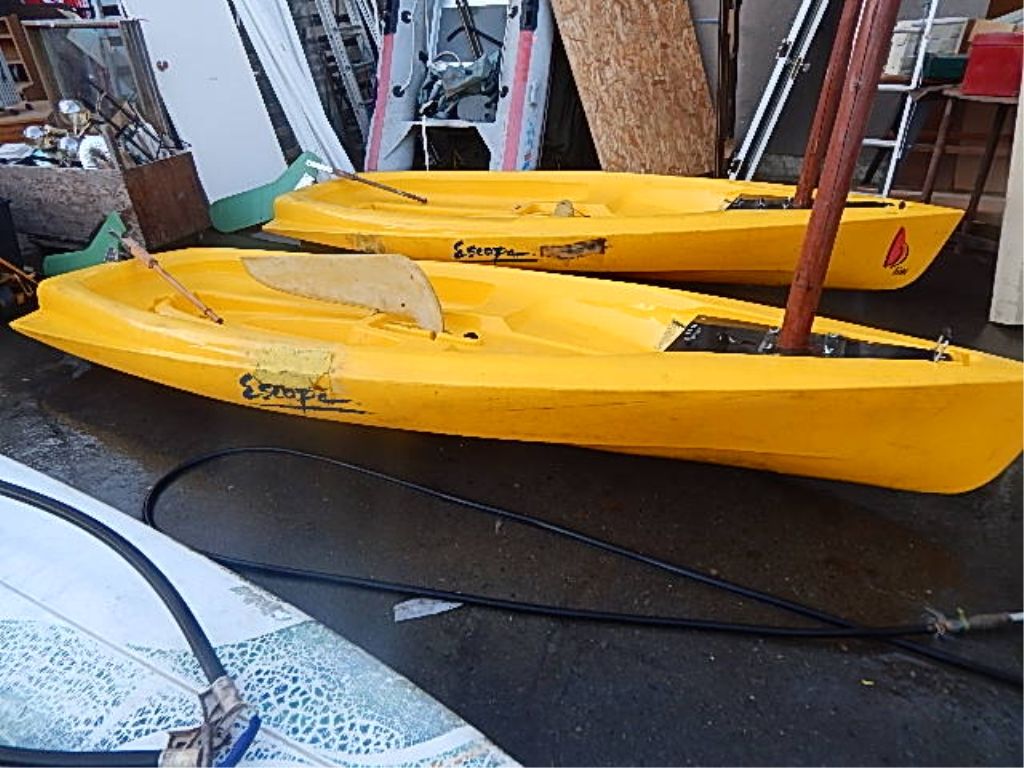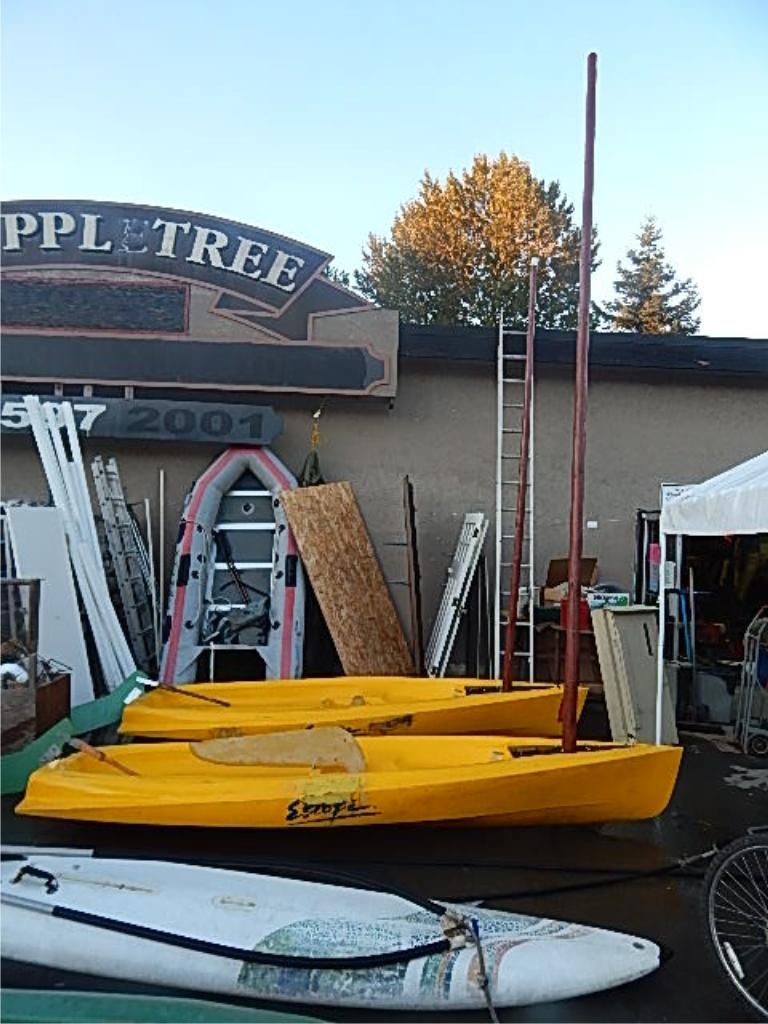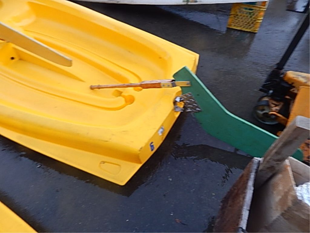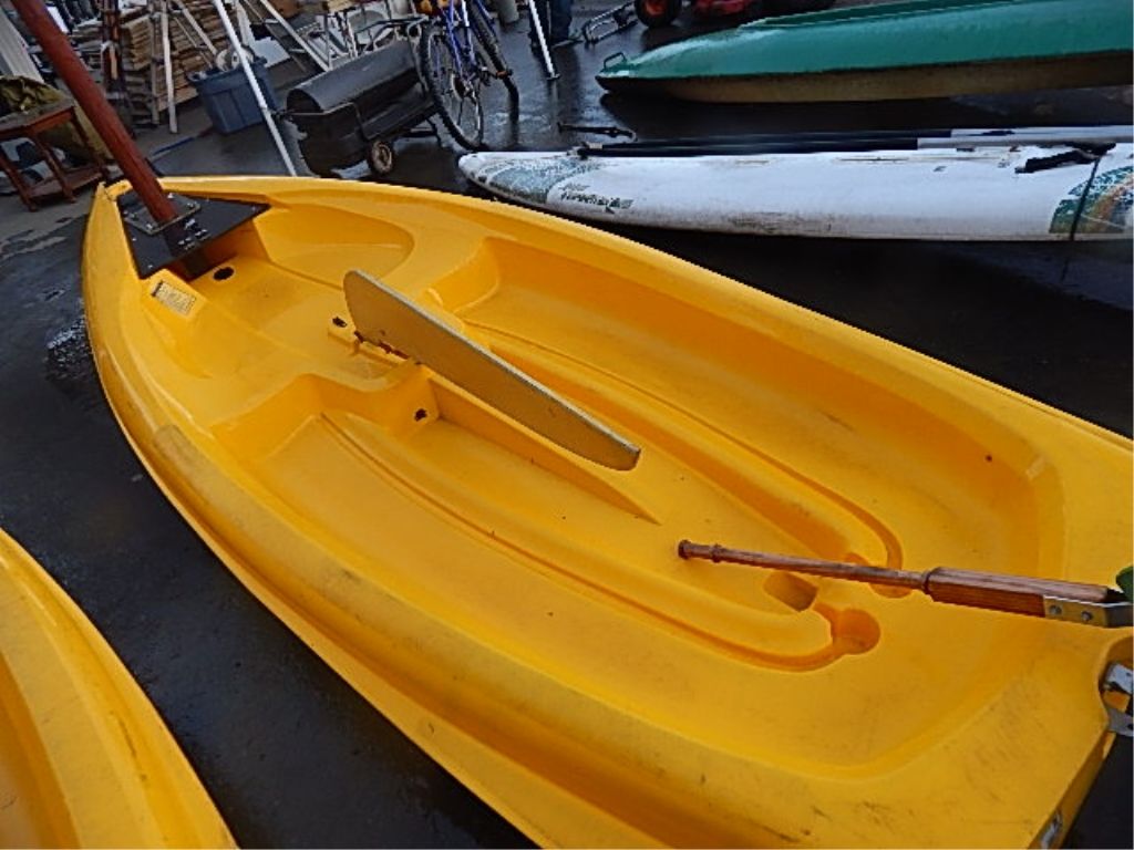 **** - SAIL BOAT WITH MAST - 11.5' LONG - YELLOW - COMES WITH RUDDER AND KEEL - SOME REPAIRS
