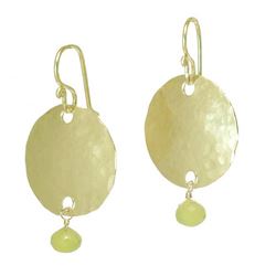 Metal: Silver Hammered circles with choice of stone (black spinel, lemon chalcedony, and sea blue chalcedony shown), about 1-1/4" long. Available in either 14K gold-filled, rose gold-filled, or sterling silver. All jewelry is entirely handmade in our studio in New York.