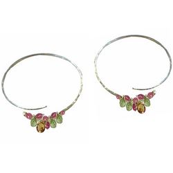 Metal: Silver Open hoops wrapped with peridot, pink ruby and citrine, about 1-3/4" long.Let us know if you want a different size, we can modify to suit. Available in either 14K gold-filled, rose gold-filled, or sterling silver. All jewelry is entirely handmade in our studio in New York.