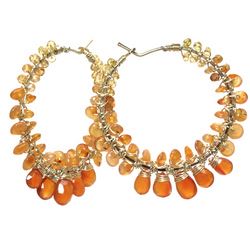 Metal: Silver Hammered hoops wrapped with citrine, mandarin garnet, and carnelian, about 1-3/4" diameter. Available in either 14K gold-filled, rose gold-filled, or sterling silver. All jewelry is entirely handmade in our studio in New York.