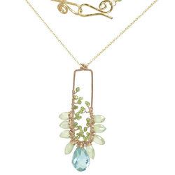 Metal: Silver Hammered rectangle wrapped with vessonite and aquamarine crystal, about 18" long. Custom lengths available, contact us for price. Available in either 14K gold-filled, rose gold-filled, or sterling silver. All jewelry is entirely handmade in our studio in New York.