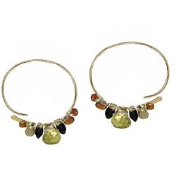 Metal: Silver Open hoops wrapped with mandarin garnet, smoky quartz, black spinel, and vessonite, about 1-3/4" long. Let us know if you want a different size, we can modify to suit. Available in either 14K gold-filled, rose gold-filled, or sterling silver. All jewelry is entirely handmade in our studio in New York.
