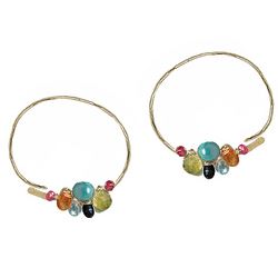 Metal: Silver Open hoops wrapped with pink ruby, mandarin garnet, peridot, turquoise, and black spinel, about 1-3/4" long. Let us know if you want a different size, we can modify to suit. Available in either 14K gold-filled, rose gold-filled, or sterling silver. All jewelry is entirely handmade in our studio in New York.