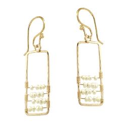 Metal: Silver "Abacus" earrings of tiny seed pearls (ivory shown, other gemstone colors available also), about 1-3/4" long. Available in either 14K gold-filled, rose gold-filled, or sterling silver. All jewelry is entirely handmade in our studio in New York.