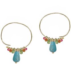Metal: Silver Open hoops wrapped with pink ruby, mandarin garnet, peridot, and turquoise, about 1-3/4" long.Let us know if you want a different size, we can modify to suit. Available in either 14K gold-filled, rose gold-filled, or sterling silver. All jewelry is entirely handmade in our studio in New York.