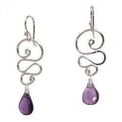 Metal: SilverHammered wired swirl drops with your choice of stone (amethyst and sea blue chalcedony shown), about 1-1/2" long.Available in either 14K gold-filled, rose gold-filled, or sterling silver. All jewelry is entirely handmade in our studio in New York.
