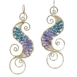 Metal: Silver Hammered swirled shapes wrapped with blue topaz, tanzanite, and amethyst, about 2-1/4". Available in either 14K gold-filled, rose gold-filled, or sterling silver. All jewelry is entirely handmade in our studio in New York.