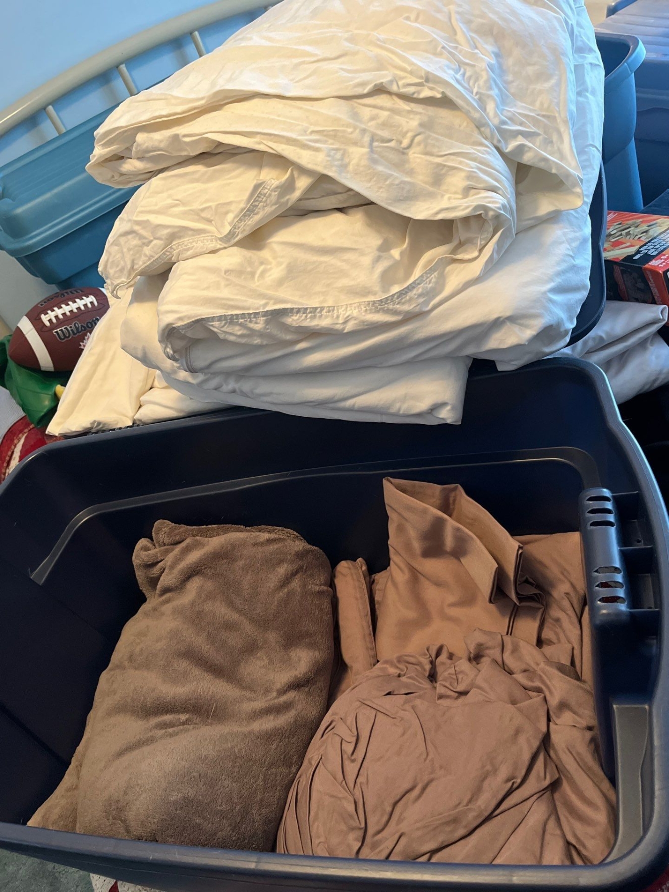 -large tote with sheets, duvet, and duvet, cover along with pillowcases in good condition