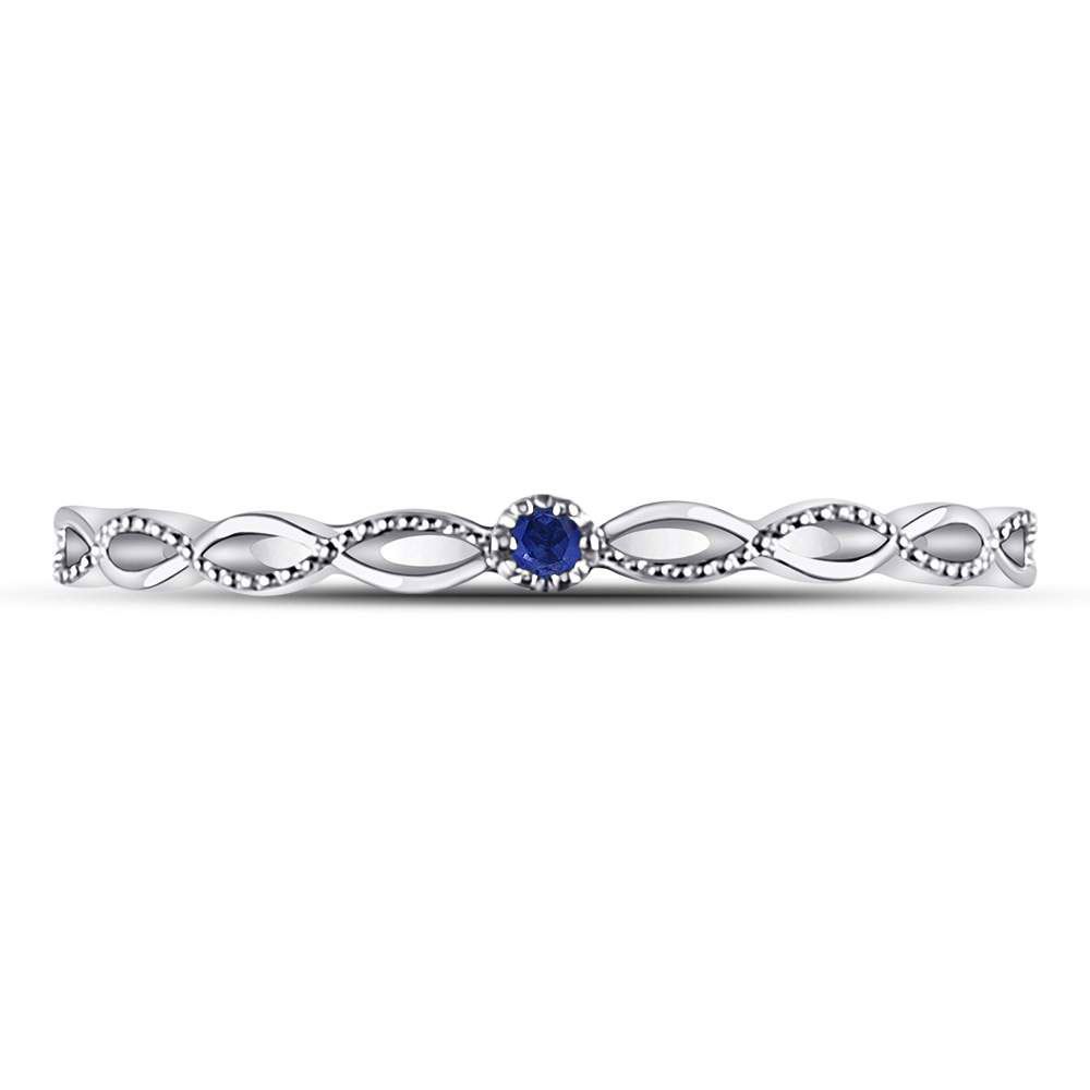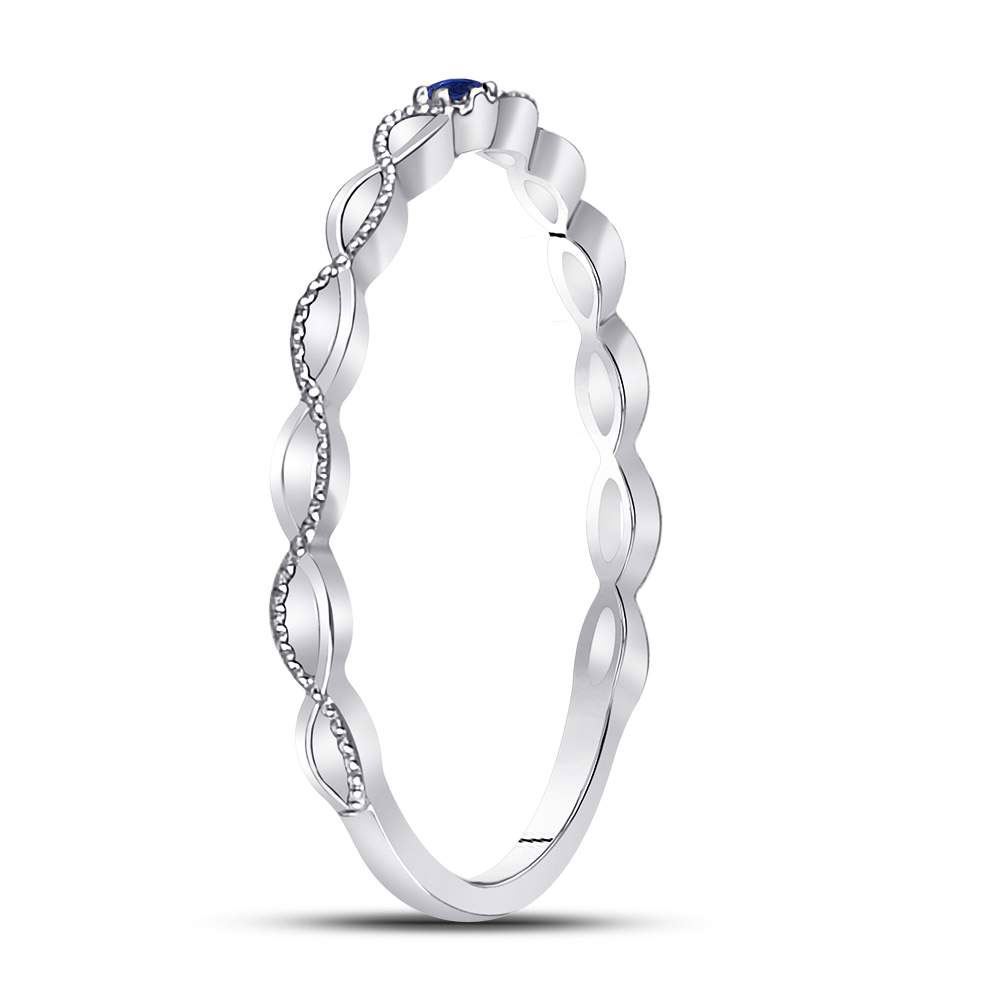 REF-8Y4X ---- 0.01 CTW Round Blue Sapphire Milgrain Stackable Ring 10kt White Gold