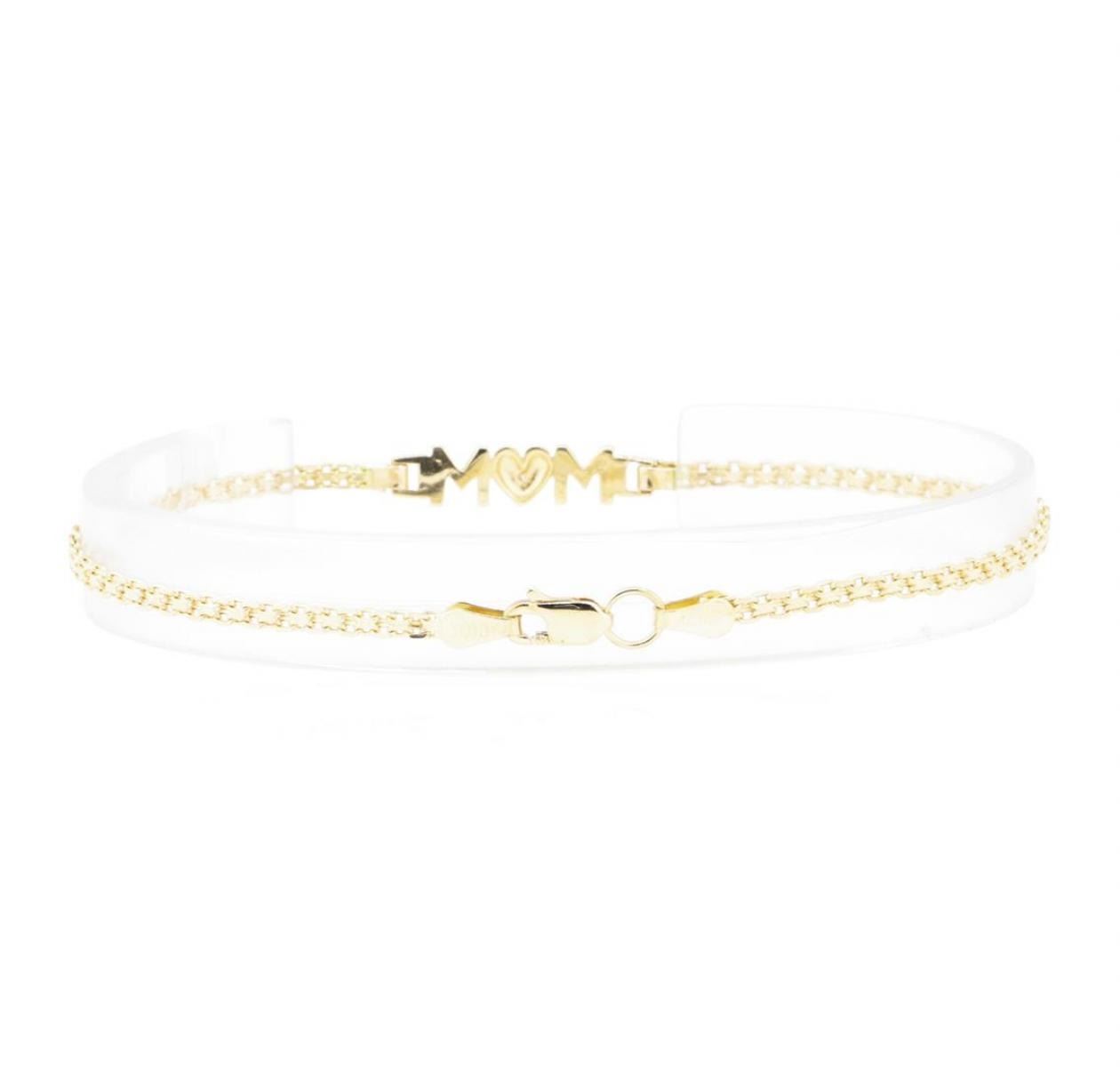 One "Mom" motif bracelet measuring approximately seven and a half inches in length featuring: 10KT yellow gold weighing 2.6 grams containing one diamond weighing 0.01ct.