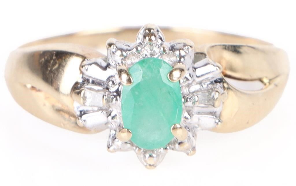 0.02 ctw. Diamond Emerald 10 karat Yellow Gold Ring.