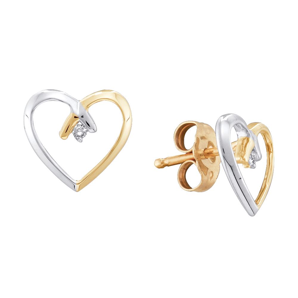 REF-9H7M- SKU: GD48330 ---- 0.02 CTW Diamond Heart Love Stud Earrings 10KT Two-tone Gold