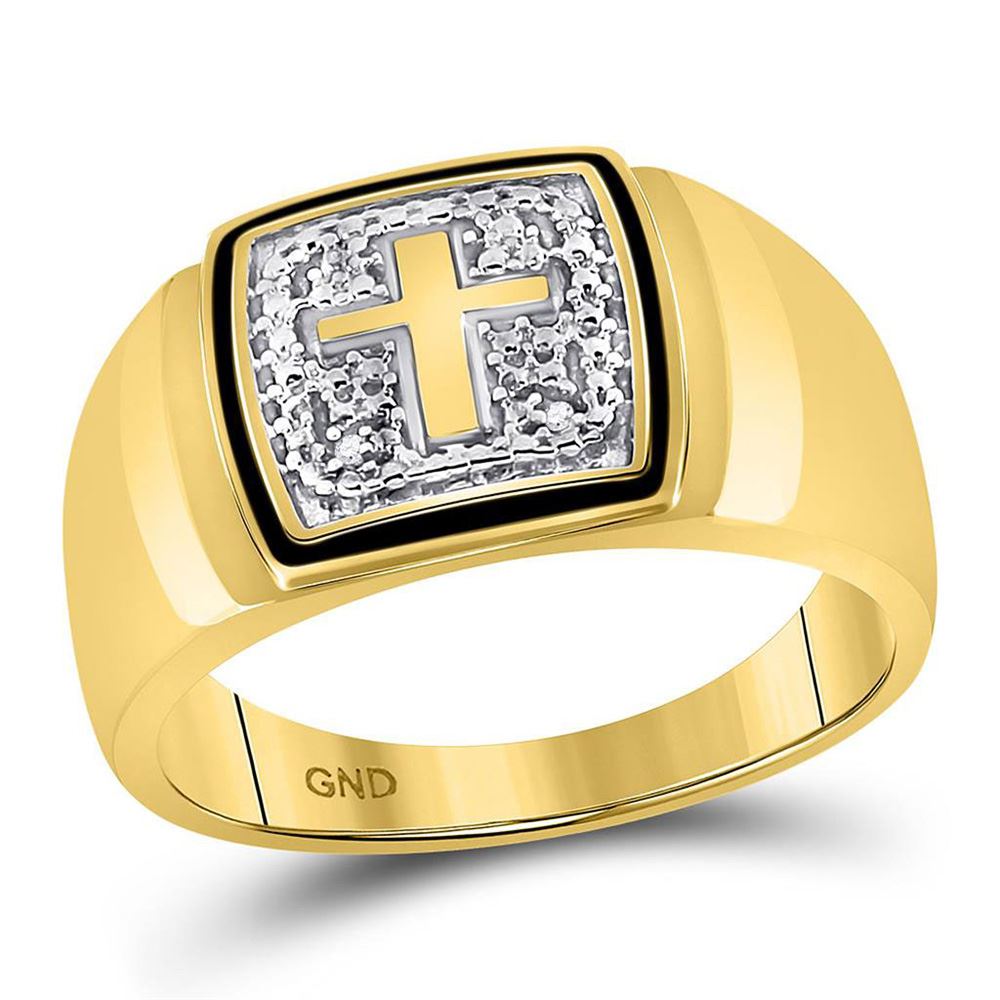 REF-36N2A - 0.02 CTW Mens Round Diamond Cross Band Ring 10kt Yellow Gold - REF-36N2A