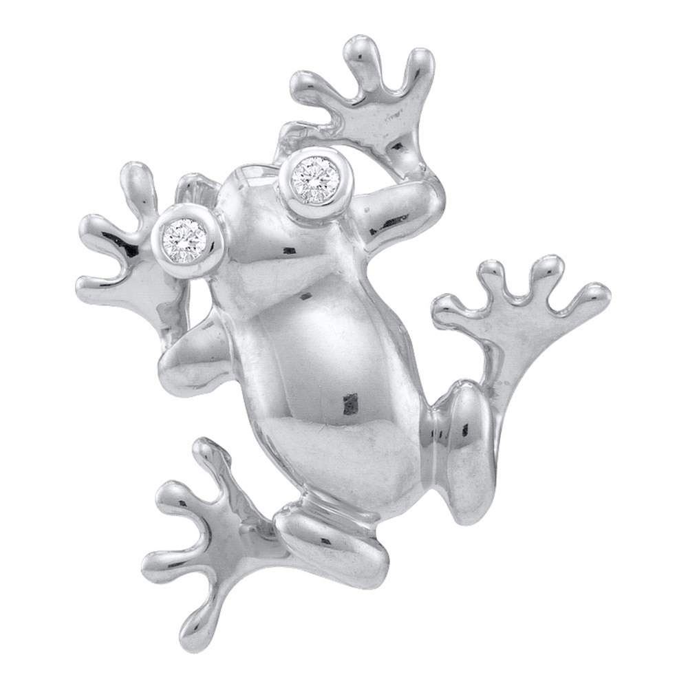 10kt White Gold Womens Round Bezel-set Diamond Frog Eyes Pendant .02 Cttw
