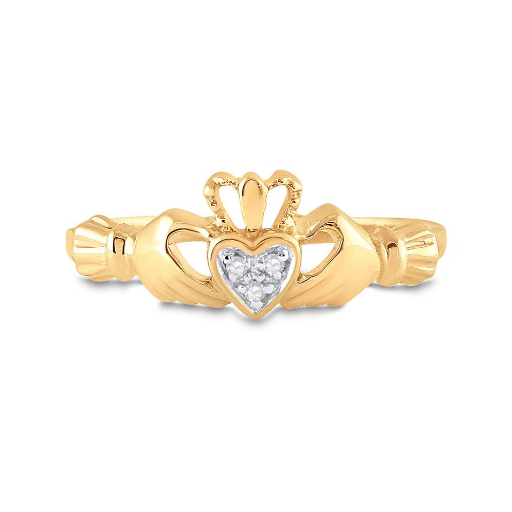 REF-13R2H ---- 0.02 CTW Round Diamond Claddagh Heart Ring 14kt Yellow Gold