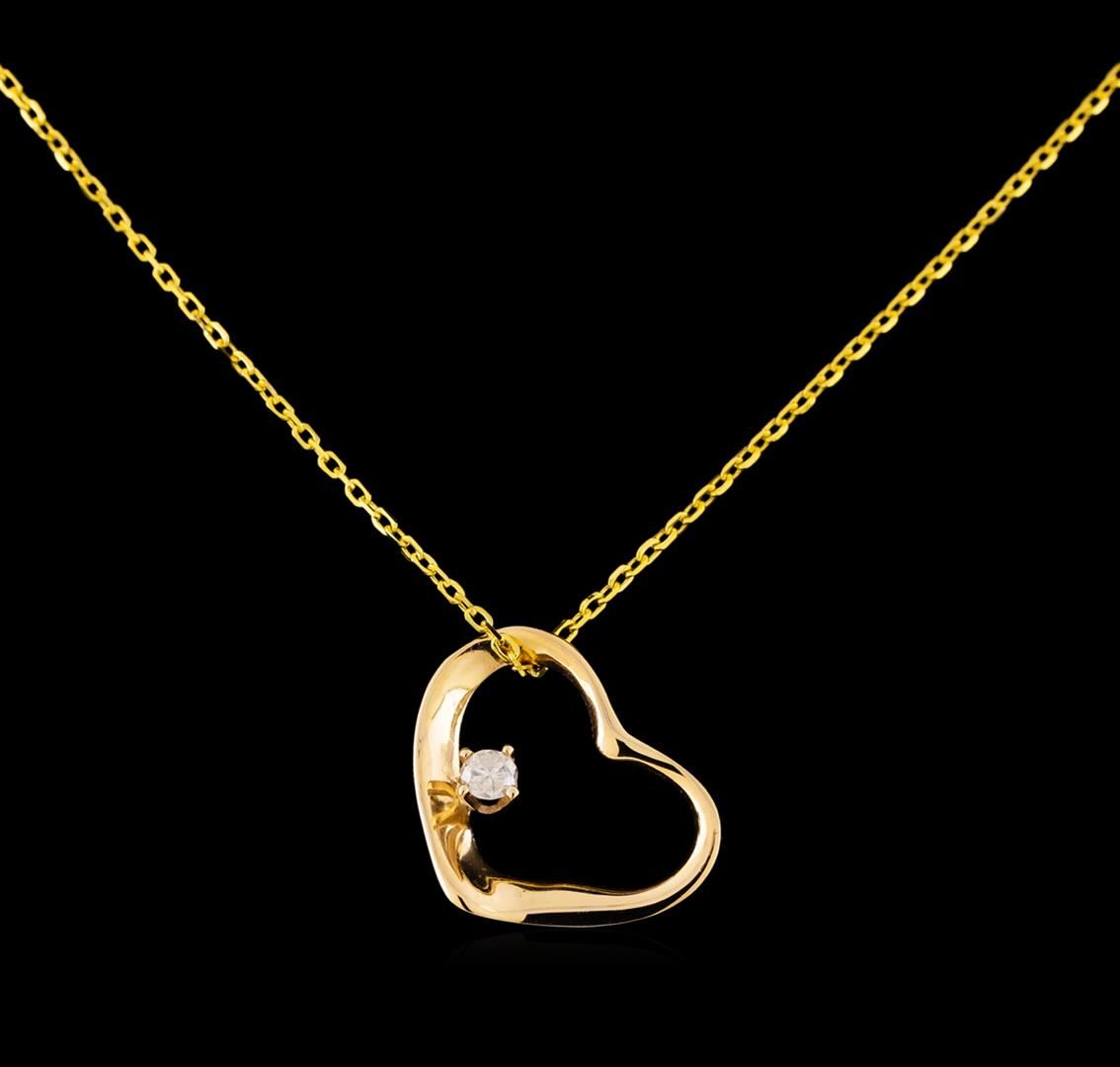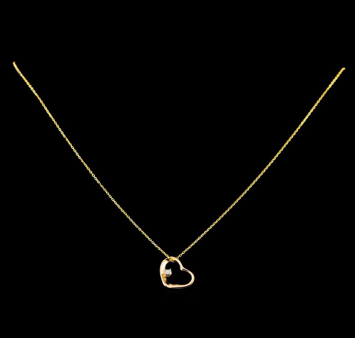 One heart shaped pendant featuring: 14KT yellow gold weighing 0.50 grams containing diamonds weighing 0.02ctw.
