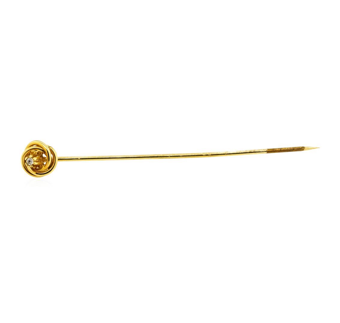 One stick pin featuring: 14KT yellow gold weighing 1.0 grams containing one diamond weighing 0.02ct.