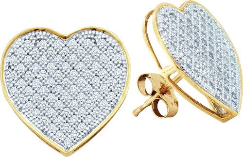 REF-19A2X ---- 0.02CT Diamond Heart 10KT Earrings Yellow Gold - SKU: 50205