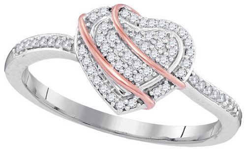 REF-19V9Y ---- 0.02CT Diamond Heart 10KT Ring 2Tone Gold - SKU: 98452
