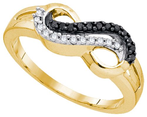 REF-19N4X ---- 0.02CTW White and Black Diamond Infinity 10KT Ring Yellow Gold - SKU: GD 91064