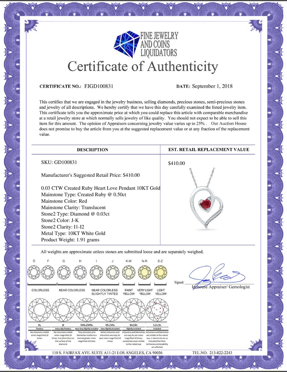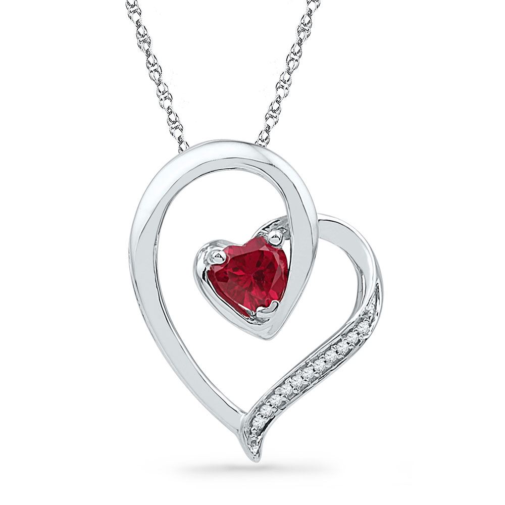 REF-10F5N- SKU: GD100831 ---- 0.03 CTW Created Ruby Heart Love Pendant 10KT White Gold